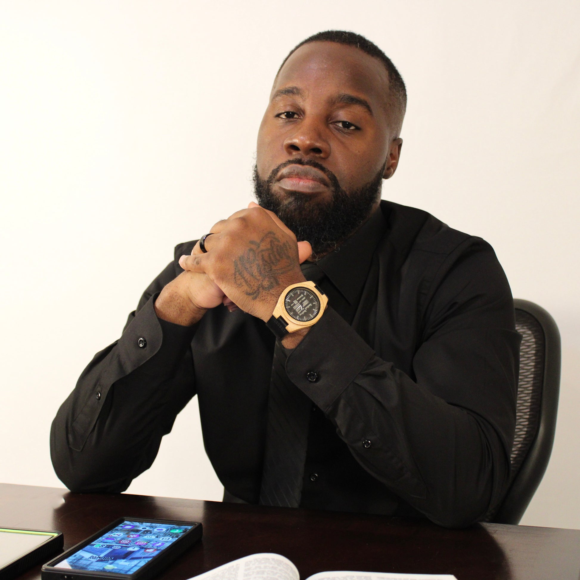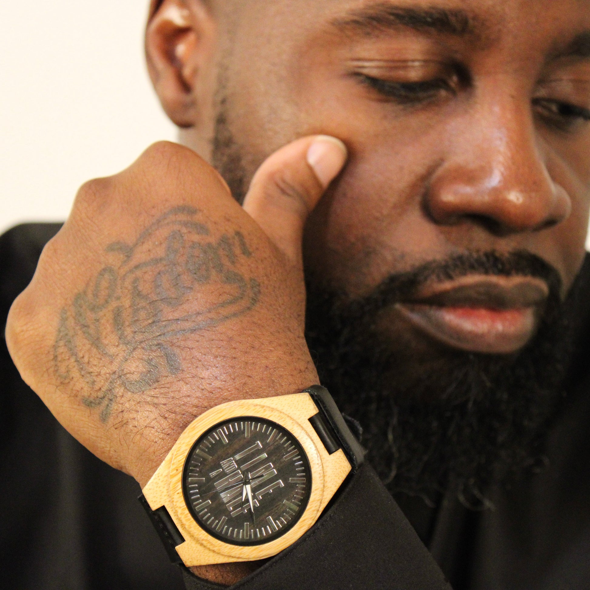 - Elegant design with a minimalist black dial and wooden accents.